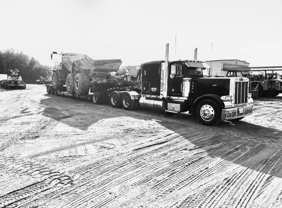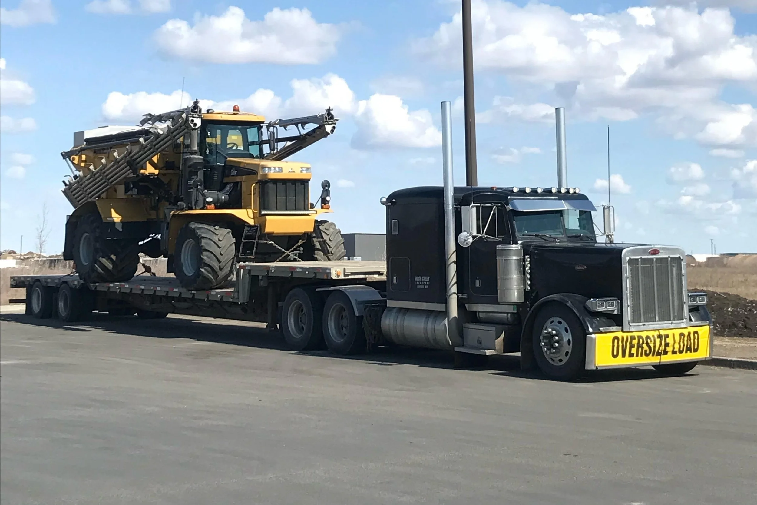Now offering since the summer of 2022 flat deck hauling, heavy hauling, oversized equipment. we wanted to be able to provide transport for farmers in every way possible and now have the equipment and the experience to do so, our RGN trailer and scissor neck trailer with winch make it possible to haul anything you need from combines, excavators, dump trucks.
